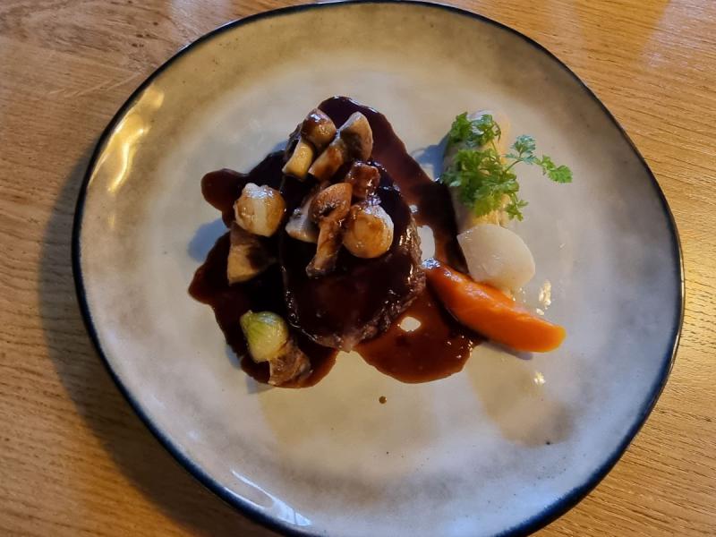 La suite du repas est tout aussi savoureuse. La joue de boeuf confite 24 heures accompagnée d'une garniture grand-mère est exquise.