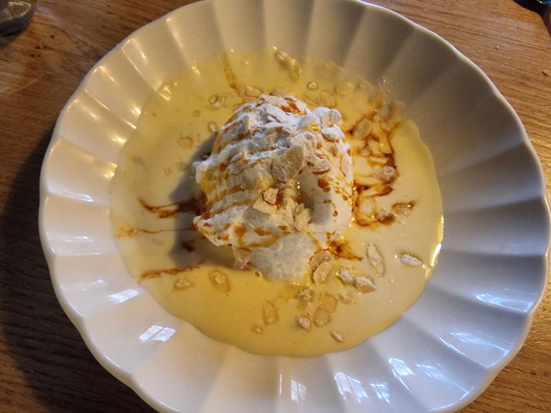 Pour ma part je choisis l'oeuf à la neige, crème anglaise à la vanille de Tahiti et amandes effilées.