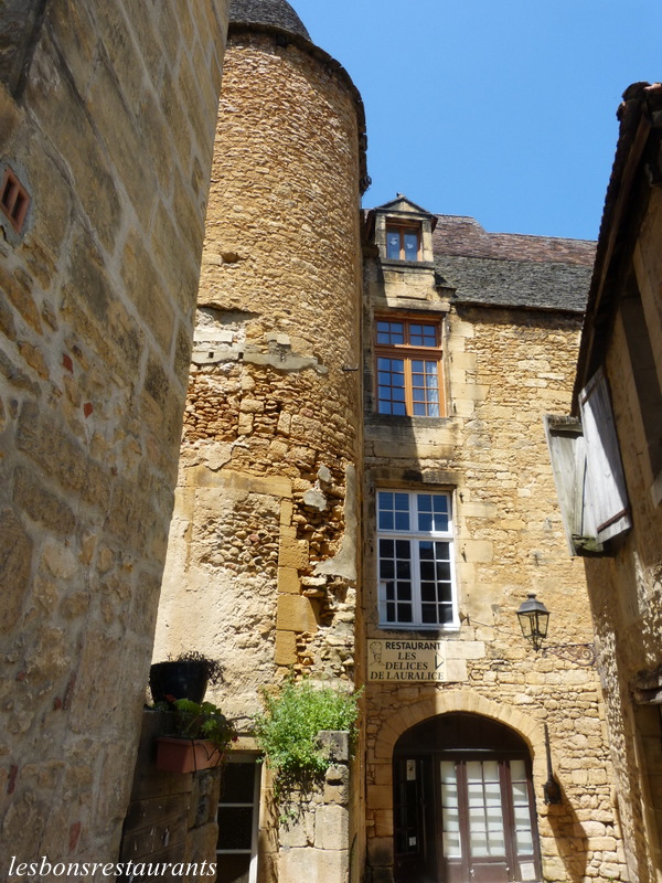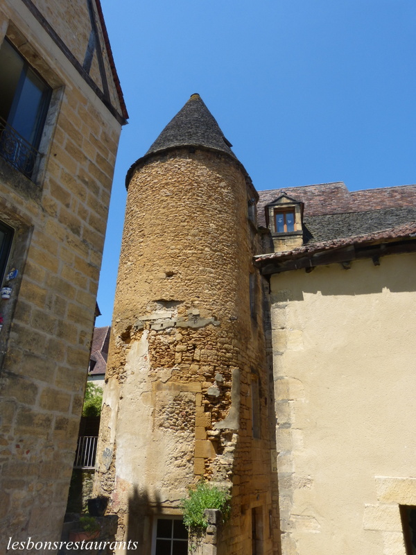 Enfin, nous y sommes! Et, juste en face de vous: Hôtel de Gisson. Cet hôtel figure parmi les plus anciens de Sarlat. Au 15e siècle, une tour hexagonale est ajoutée dont la couverture à sept pans en fait une curiosité architecurale. Comme vous avez pu le voir, la place du marché aux oies est entourée d'hôtels particuliers du 15ème et du 16ème siècles.