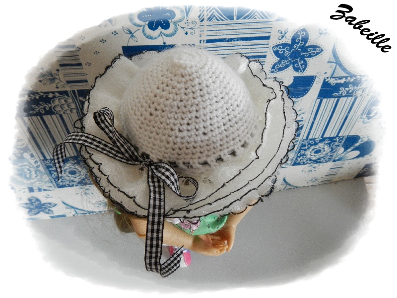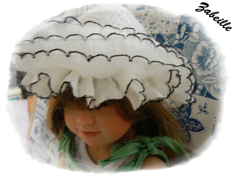 Voilà la tenue est quasiment terminée, il me reste cependant à faire le chapeau car celui ci sera bien trop petit, et puis je veux suivre les désiratas de ma "cliente", je vais travailler cet apres midi à l'élaboration de ce nouveau chapeau