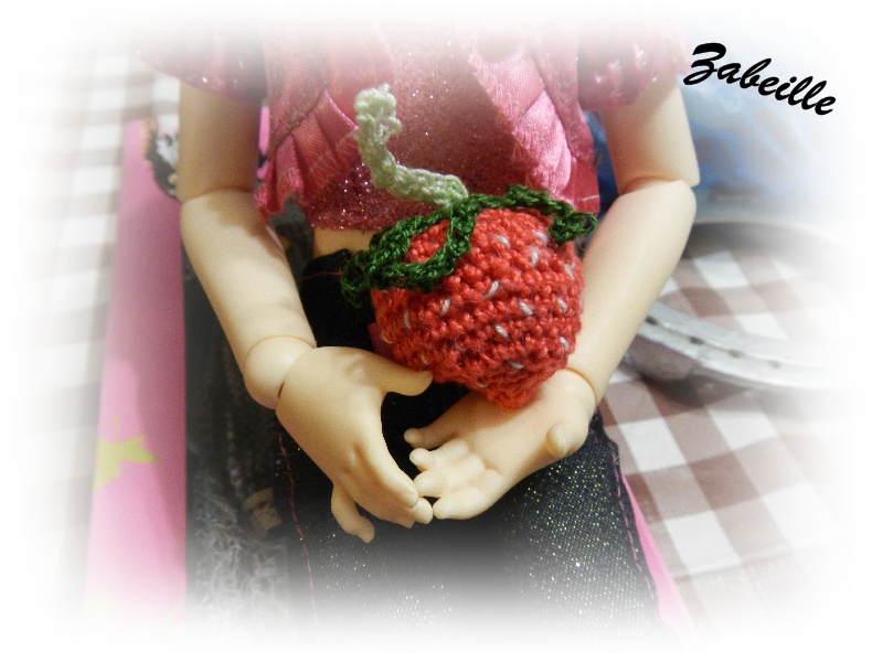 C'est toujours une joie réelle et sincère ! l'occasion de faire se rencontrer nos poupées et d'échanger. Silgalia n'est pas venue les mains vides, j'ai reçu un magnifique pied de rhubarbe d'ailleurs dès le dimanche matin mon homme à nettoyer l'endroit ou nous pensons qu'elle se plaira, dans l'histoire il a meme replanté celle que nous avions dans un énorme pot et qui il faut bien le dire végétait. Et puis moi bien sur j'ai offert une tenue made in Zabeille. Ce costume est trop grand pour les puki et les shelly mais sur une petie poupée de son enfance qui fait 14 cm ca le fait !! Silgalia merci du pret de ta photo.