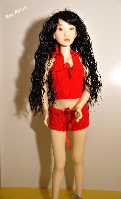 En ce moment j'ai envie de tricoter et surtout du rouge !! Voila donc qu'en peu de temps j'ai tricoté un shorty pour ma nabikiss et un shorty pour Sivaly. J'ai fini de tricoter un autre shorty rouge pour mon iple house car elle a un bon postérieur j'ai essayé de penser à ses fesses à rentrer dansl e shorty, mais en bonne fainéante j'ai tricoté à mon idée dans aller chercher la poupée, donc avant de coudre il faut que j'aille voir si je ne me suis pas plantée. Je l'avais délaissée un bon moment ma belle asiatique mais je me rend compte que je l'aime de plus en plus encore une que je n'ai pas envie de vendre.