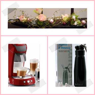choisis avec goût, qui auront chacun leur place art floral pour la suspension en métal vieilli ciseaux a couper les herbes aromatique dont 1 sachet à semer livret de cuisine livret sur les plantes du jardin + 2 petites plantes pour le jardin petits ramequins de présentation moules silicone vin et chocolats merçi à nos amis puis nous sommes allés faire une ballade à leur ancienne école Cerisy ou il y avait une porte ouverte sur les végétaux