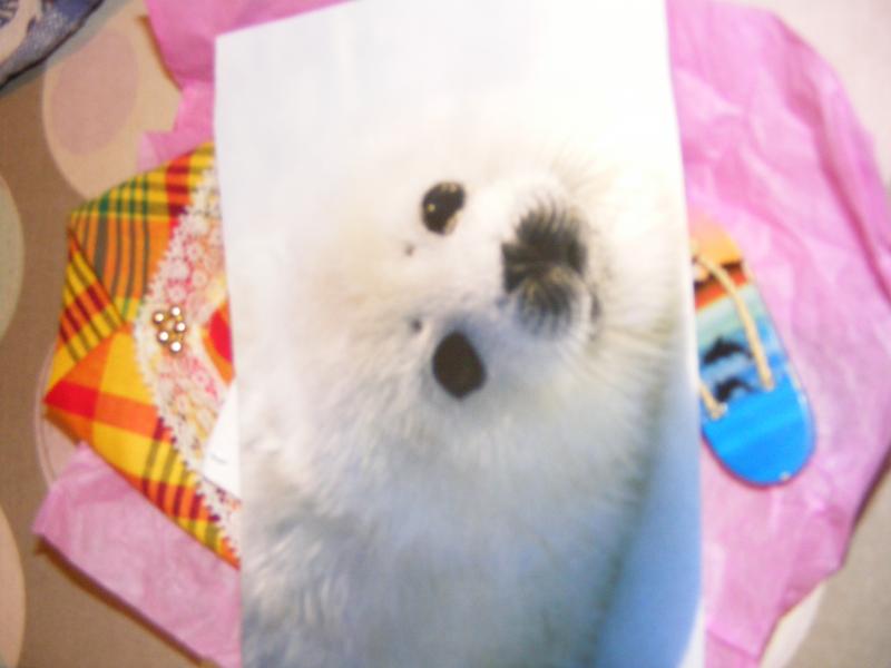 surprise dans ma BAL ce matin de jolis petits cadeaux de DELY 1 porte clés tongue un petit tissus décoré par Dély renfermant des graines de corrosol une jolie carte BB phoque et un petit mot avec ses bons voeux Encore merçi DELY