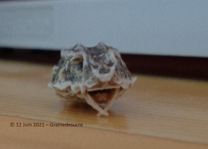 Le fruit de la tétragone forme une drôle de capsule à 4 pointes, ce qui lui valut cette appellation géométrique !" ("..." : phrase prise le net). |