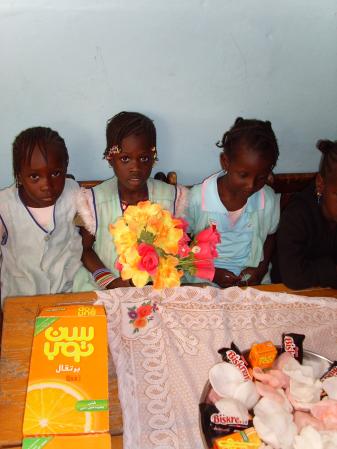 La voici avec sa maitresse, tata Mame Falla Une nouvelle occasion pour boire et manger pour les élèves de la classe