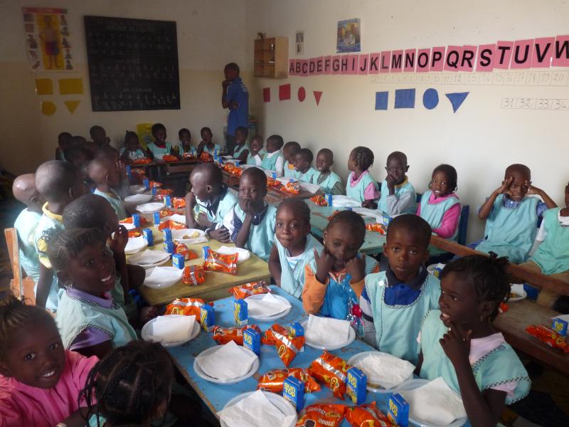 Chaque élève amène un gouter supplémentaire et on met tout en commun avant de distribuer aux élèves.