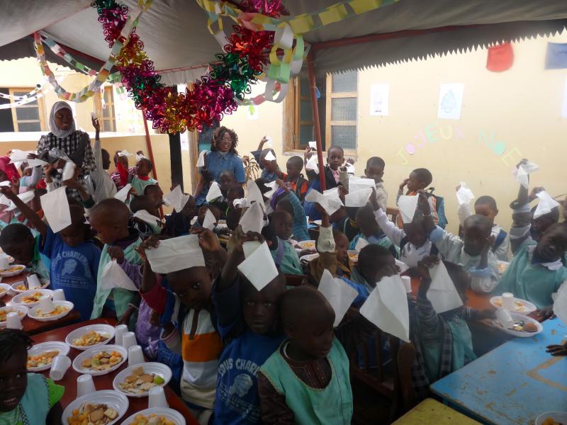 De plus, au moment du repas, 2 seaux sont disposés pour les élèves afin qu'ils lavent et rincent leurs mains.