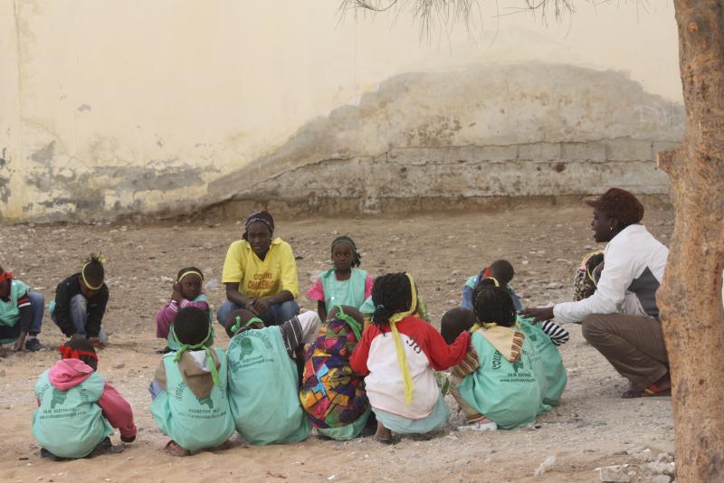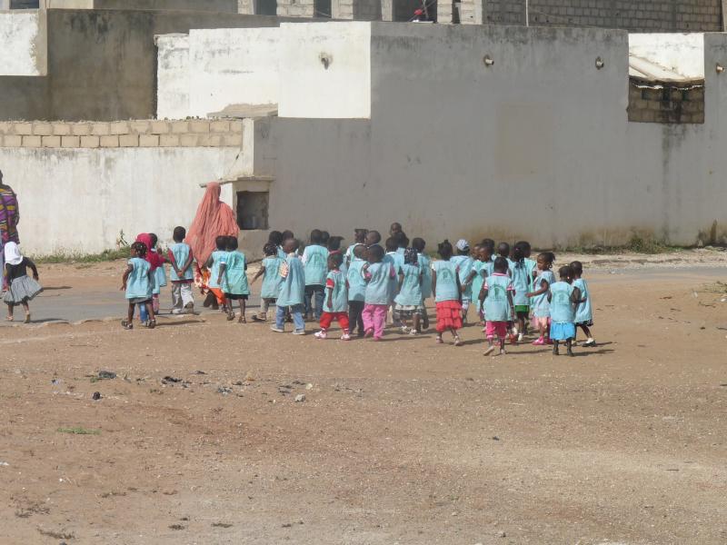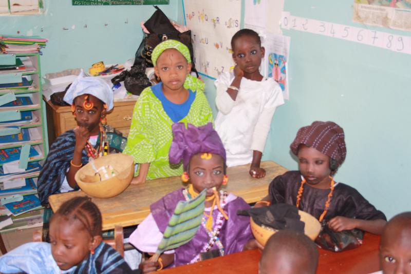 Chaque lundi les enfants de la maternelle assistent à la levée des couleurs en chantant l'hymne national. Puis M. Kamara leur apprend les couleurs du drapeau sénégalais et le fait qu'il faut respecter le drapeau ainsi que son pays.