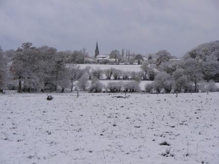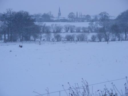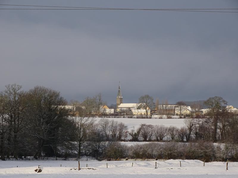 notre bourg magnifique et tellement rare de le voir sous la neige
