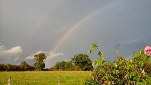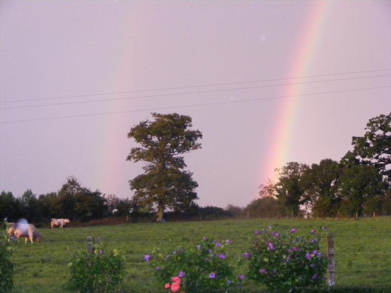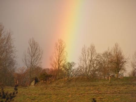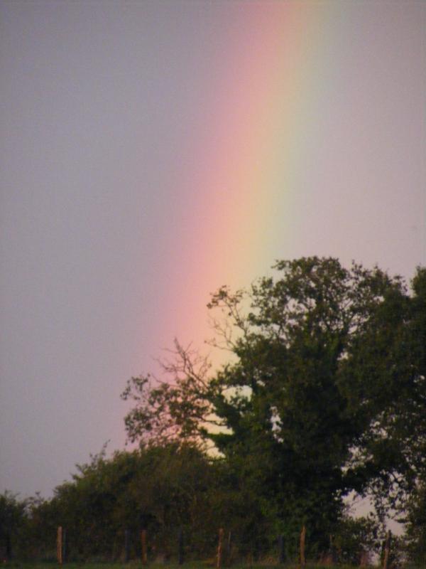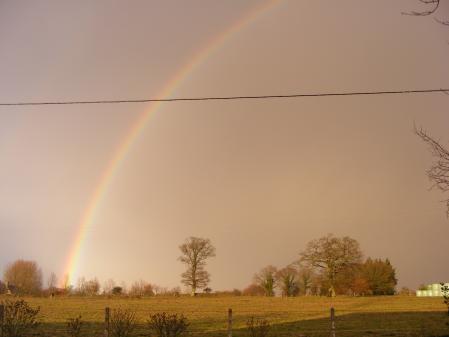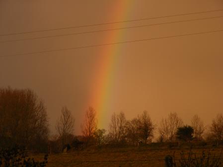 aprés la neige c l'orage suivi de gros grêlons sur 3 cms d'épais! impréssionant! surtout sur la route on ce serait cru sur des billes!!! puis un bel arc-en - ciel