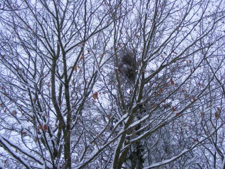 je viens de voir qu'il y a un nid de héron dans le haut de l'araucaria ! c la 1ere fois!