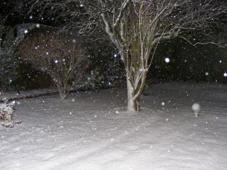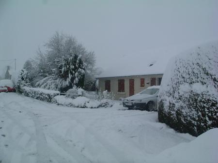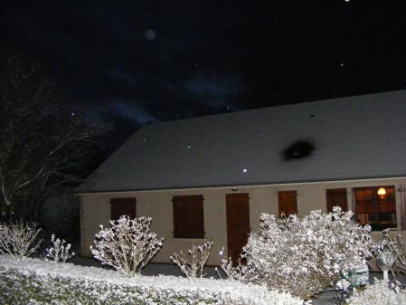 elle commence à tomber, demain matin il y aura peut-etre un joli manteau tout blanc,pour faire de jolies phtoooooooooos voiçi notre maison (photos prise en janvier 2007 c joli quand meme!!!!!!) je sais pas si on en aura autant................