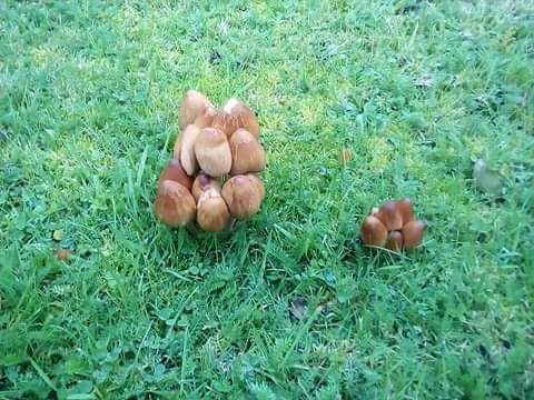 Ils ont poussés dans la nuit Des champignons d'une ancienne souche il y avait un arbre broussoniettà avant sur ce coin de jardin