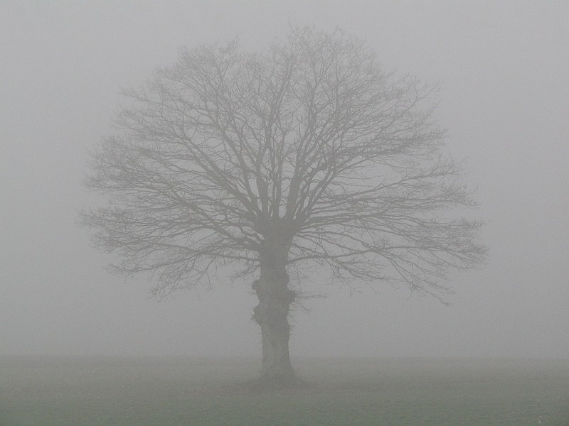 belle journée à tout le monde arbre dans la brume