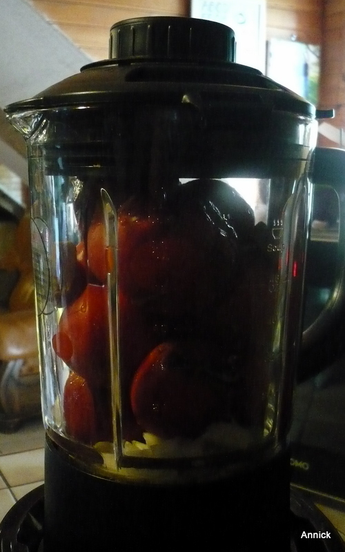 Une astuce et pour pas un rond, avec mes tomates trés mures, "un coulis" comment ne pas y avoir pensé avant ! Il vous faudra un blender chauffant ou pas, 20 minutes de votre temps, des tomates à points, 2 cubes à chaque quantité de tomates mises dans le blender. Pour celui-ci ce sera un coulis aux oignons. Coupez l'oignon en petit dés, Oignons, tomates, 2 cubes, 3 cuillères d'eau si nécessaire. Faire tourner sur soupe (20 minutes). Le Blender chauffant Cookyoo cuit et mixe ! Stérilisez vos bocaux aux micro-ondes.