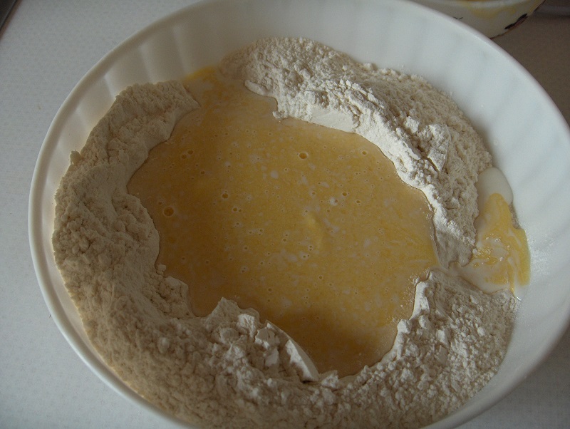 * Ajouter le beurre fondu puis la farine tamisée (avec la levure) et un rien de sel.