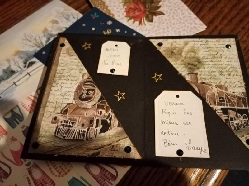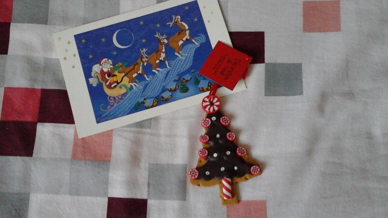 une belle carte un ptit père NOËL ET UNE JOLIE SUSPENSION QUE JE NE MANQUERAI PAS D'INSTALLÉ DANS LE SAPIN 2016 DE JOLIES CHOSES RÉALISÉES AVEC TALENT MERCI MERCI