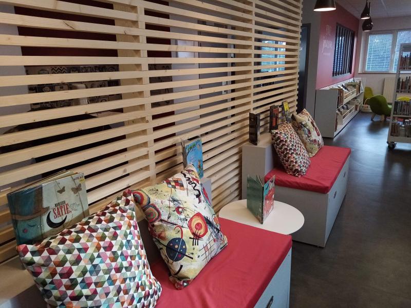 De l'autre médiathèque avec du nouveau mobilier dans une commune voisine qui fait partie de notre commune nouvelle