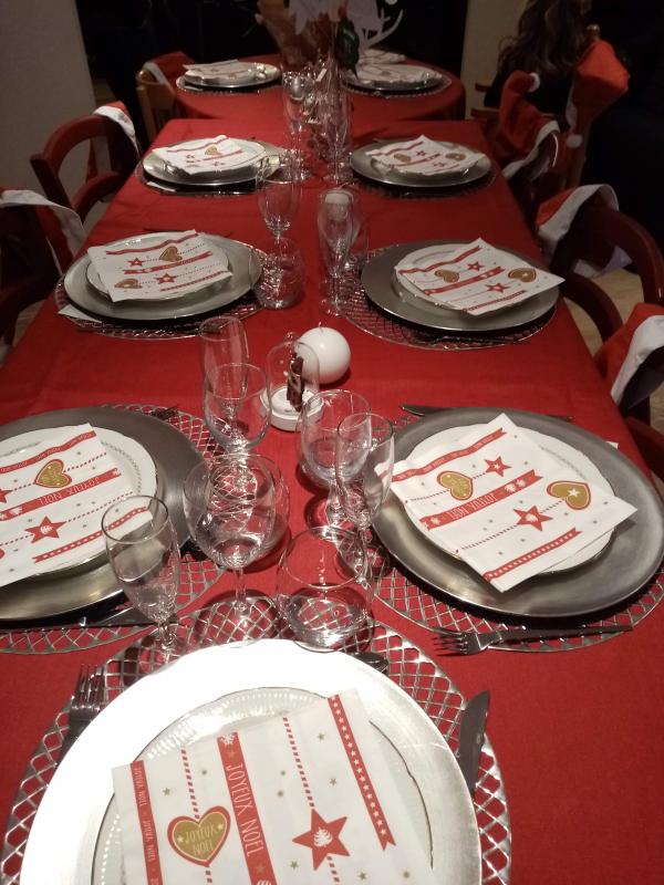 Apéritables et bulles Escargots huîtres au camembert Brochettes au deux poissons et sauce chorizos Magrets sauce au poivre Grattin dauphinois le tout maison Salade et fromage Buche aux fruits frais BuChe tiramitsu de Marvyn Mini verrine de riz au lait