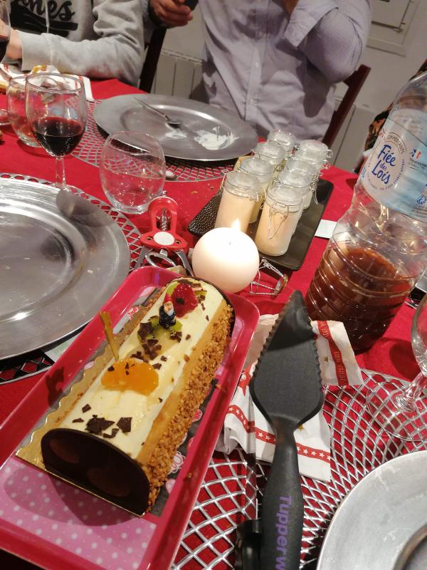 autour des apéritables variés fait maison Demi melon barbecue Plateau de fromage de Normandie et local Un dessert gourmand avec 60 petites bougies soufflées et entourée de notre petite famille tartelette au fraises croque bouche verrine au carembars