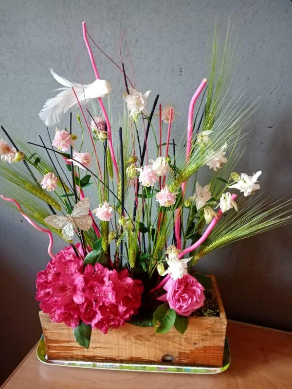 Une boîte en bois et de la mousse oasis mouillée Belle soirée
