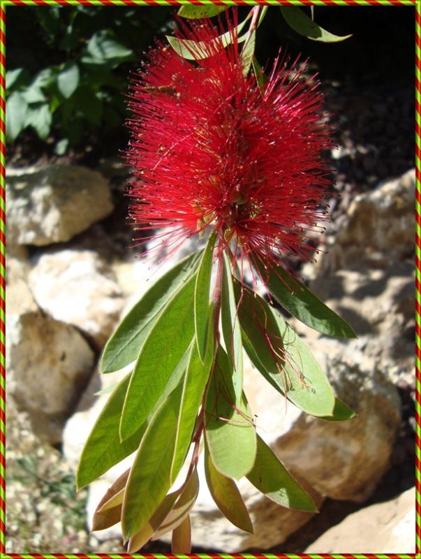 Le callistemon ou le Rince-bouteilles est un arbuste australien aux fleurs originales qui apparait au mois de Mai dans les jardins.
